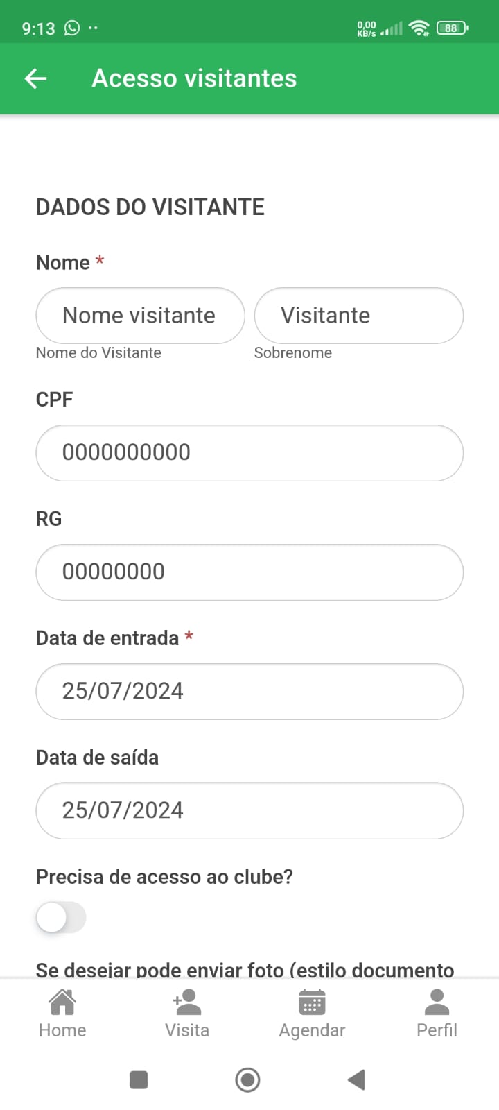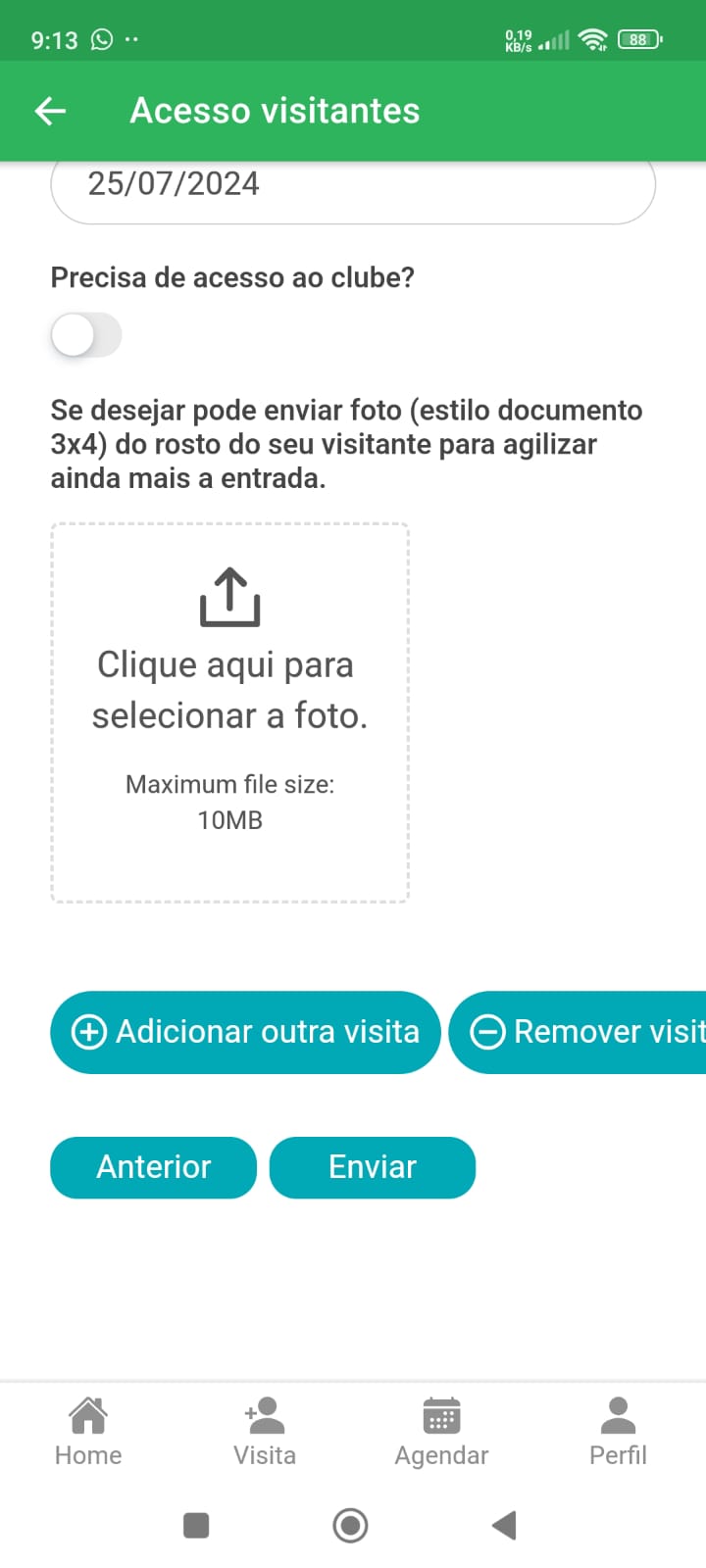 Caso deseje, você pode adicionar a foto do rosto do visitante para agilizar na entrada pelo acesso facial.