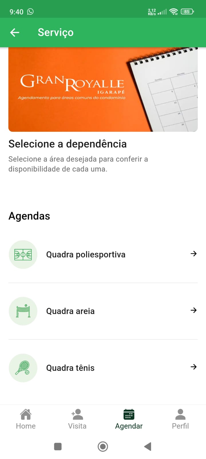 RESERVAS: Faça reserva dos espaços comuns do condomínio, a reserva ficará salva em seu perfil.