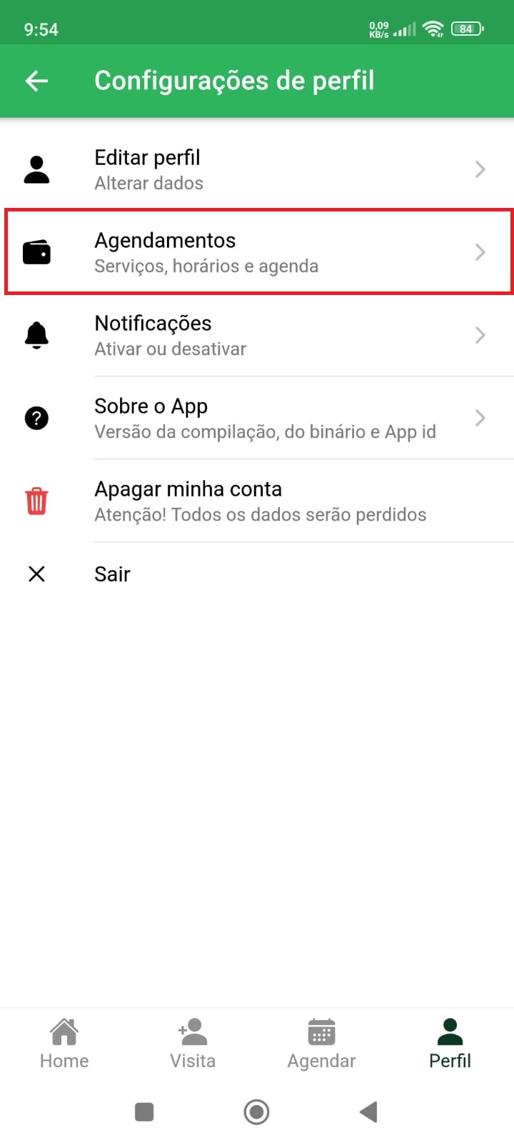 Toque em agendamento para abrir seus horários marcados.