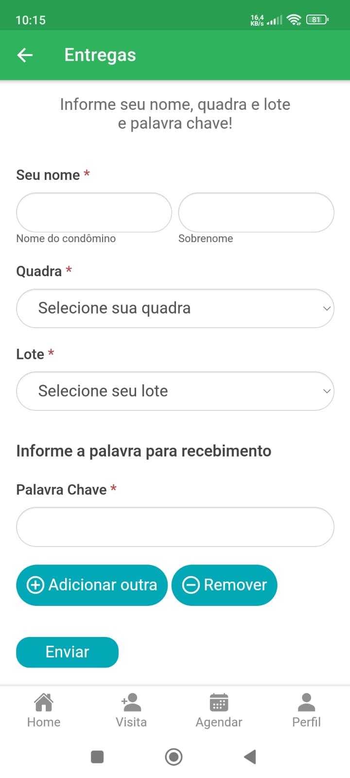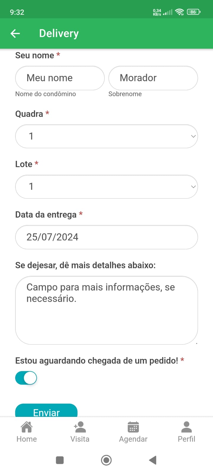 Estando tudo certo basta tocar em ‘ENVIAR‘ e pronto, as informações já serão recebidas na portaria!