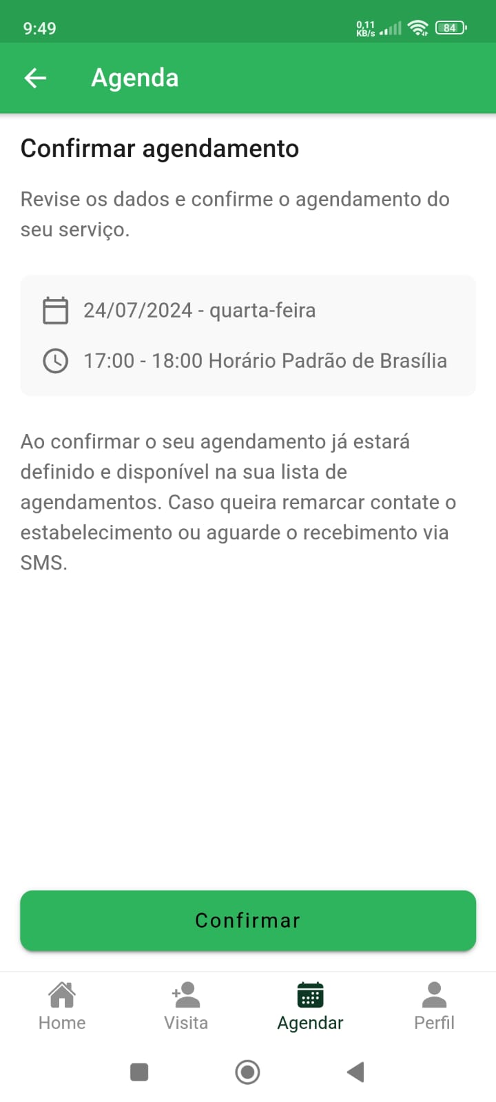 PRONTO! Já foi confirmado o agendamento.