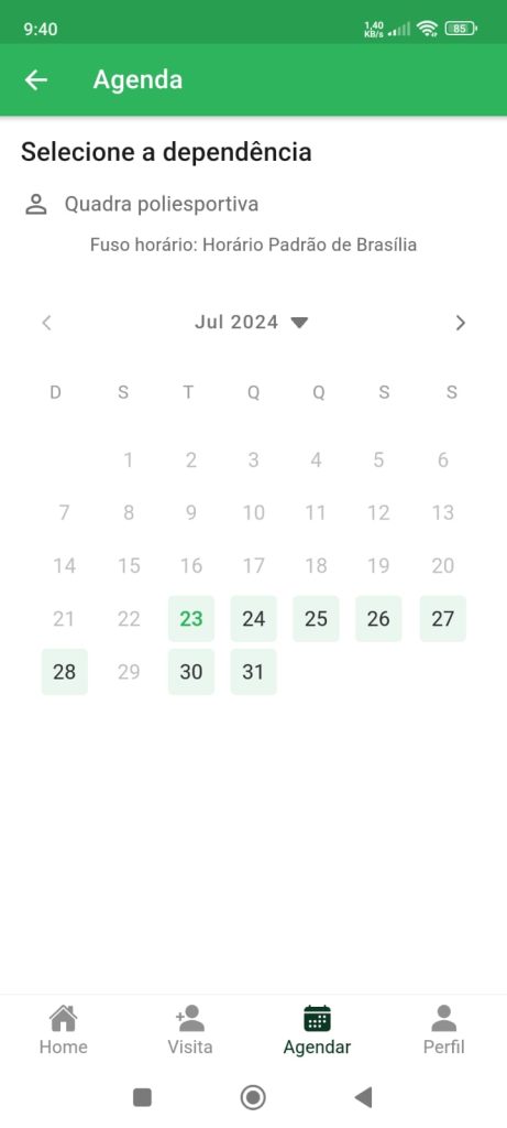 Selecione o dia que você agendou (vai apercer a palavra ‘ver‘). O calendário irá exibir seus horários.